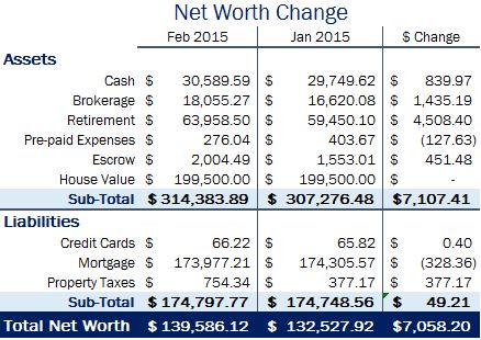 When I started 2015, I had a goal to invest an average of $1,000 per month into my brokerage account, max out my Roth IRA, and continue my standard 6% base pay contributions to my 401(k). This will equate to a total of about $23,000 this year, before the company match in 401(k). There’s always going to be some volatility in the market, and I’m well aware that it’s impossible to time the market. This is just a reminder to myself that I should be focused not on when to invest, but what to invest in.