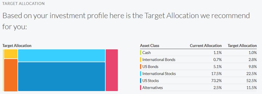 Looks like I’m well diversified and pretty close to target allocation. My next $1000 will likely go to US stocks.