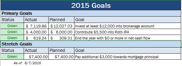 - July was cash flow positive, with $1,485.53 being added to the bank accounts. This is primarily due to a $3,000 check received by my parents unexpectedly, offset by additional principal contribution to the mortgage of $2,400.