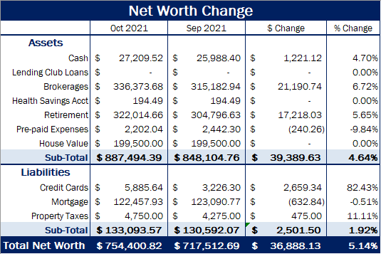 October 2021 Net Worth Update